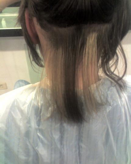 yo lo aplico el color despues con dos tonos mas claros,pero en esa mezcla pongo (a proporcion de lo que necesitemos ) 3/4 (2 tonos mas claro) mas 1/4 de superaclarante y oxi a 30 vol