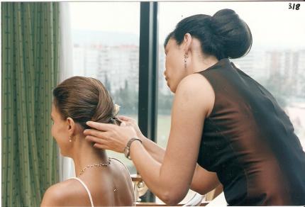 Yo no soy muy aficionada a las fotos, pero rebuscando he encontrado algunas de novias la primera es del año 1998 y recuerdo que tenia un pelo finisimo y que no hubo manera mantener los rizos en su sitio hoy en dia se me aguantarian( lo que hace la practica!).