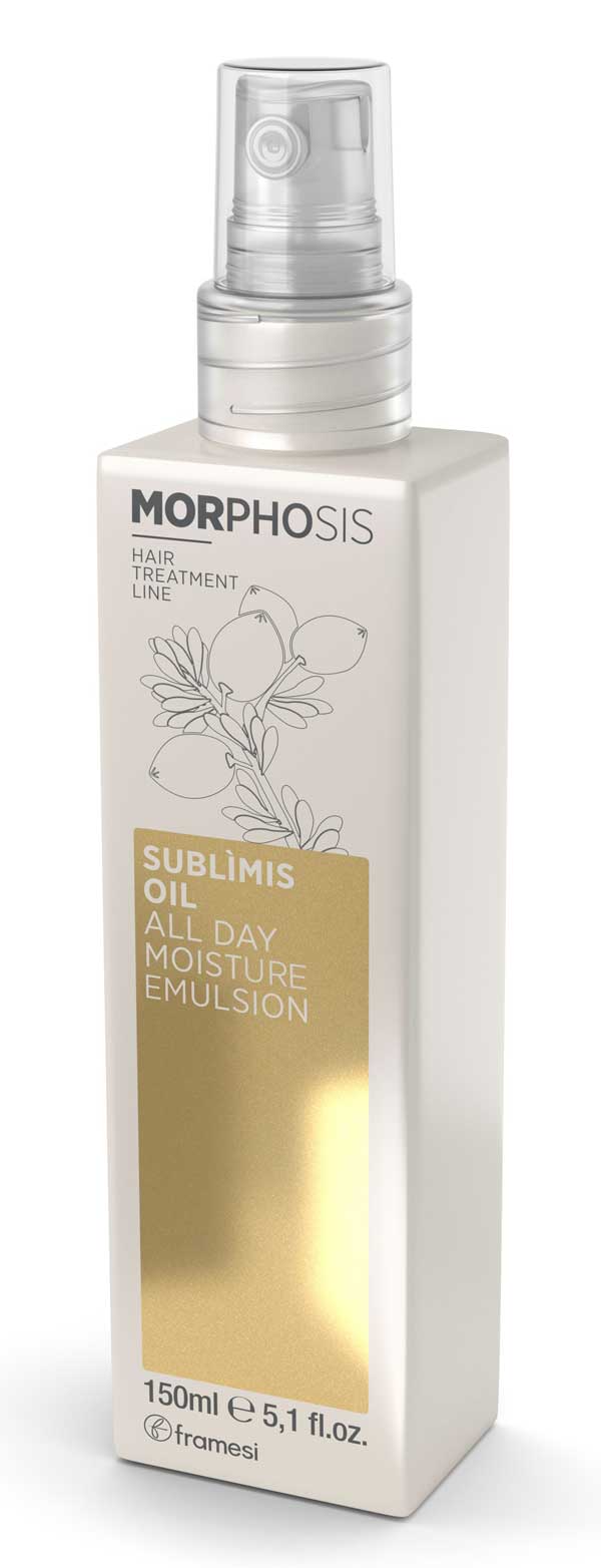 Por un lado, presenta Morphosis Sublimis All Day Moisture Emulsión. Se trata de un acondicionador a base de aceite biológico de baobab y de argán que regenera el cabello al instante y que no necesita aclarado. Con tan sólo un minuto regeneras el cabello y lo nutres al instante para todo el día. En formato espray, utilizado en el salón de belleza se convierte en un producto indispensable y que hace aumentar las ventas.