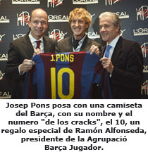 Uno de los momentos más entrañables de la noche tuvo lugar, sin duda, cuando Ramón Alfonseda, presidente de la Agrupació Barça Jugador, hizo entrega a Josep Pons de una camiseta de los años 20 con su nombre y el numero "de los cracks", el 10, con la que Pons posó emocionado en varios momentos de la velada. El final de fiesta, como no podía ser de otra manera, corrió a cargo de Jordi L.P., que supo poner la guinda a una gala cuyos invitados convirtieron en inigualable.