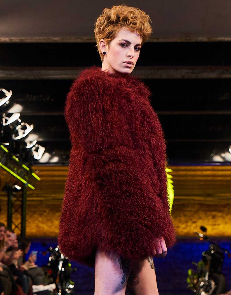 Un equipo ghd de primeras figuras del peinado ha sido el responsable de algunos de los looks de más rabiosa actualidad para el desfile de la diseñadora Pilar del Campo, de reconocibles aires moteros, próxima tendencia