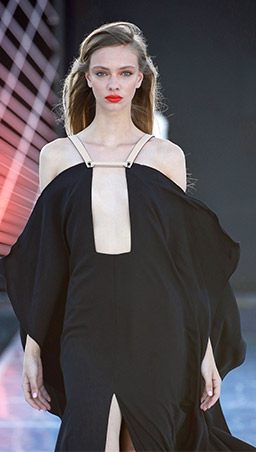 Roberto Diz. Se optó por un efecto wet con accesorios tipo diademas para su vanguardista propuesta.