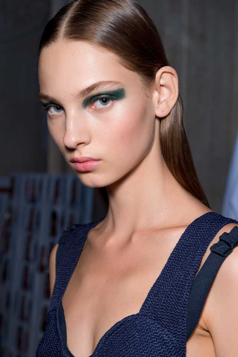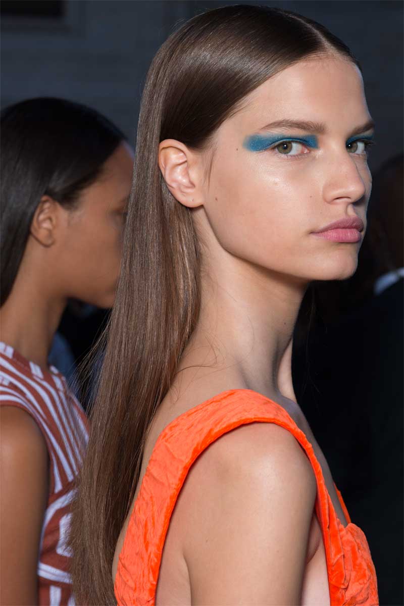 "Para una colección de una diseñadora como Victoria, la decisión respecto al look del cabello debe ser un proceso intuitivo. Esta vez creamos un peinado liso, pulido y brillante. Buscábamos algo minimalista y moderno", explicó Guido Palau, estilista internacional de la firma,.