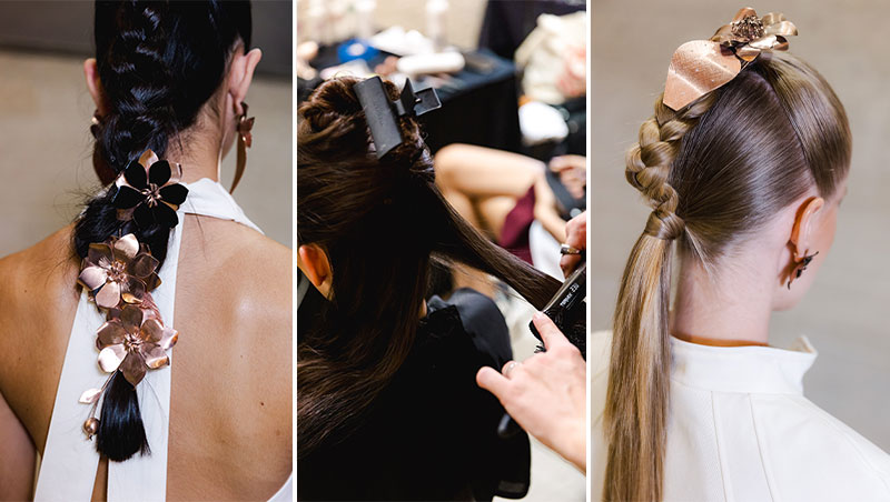 El equipo artístico de la mano de Goldwell: Héctor Carvajal y Adrián Pardo, juntamente con María Tattaglia, diseñaron los estilismos utilizando productos de la firma, creando peinados de acabado contemporáneo que reforzaron la visión vanguardista de la diseñadora.