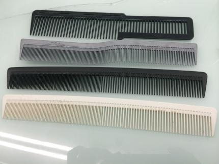 Herramienta de vital importancia, yó (como todos supongo) he ido experimentando con distintos peines pues como dice Lord es una herramienta barata y eso facilita el probar y probar, os dejo foto de lo que normalmente uso dejando al margen esqueletos, ingleses, cerda natural etc.El wahl lo uso cuando trabajo con la máquina en la otra mano, el curve lo gasto para contornear pues su forma me permite meterlo en vertical con comodidad en zonas como el arco de la oreja o la coronilla mientras observo de perfil y los otros dos son un janeke y un bifull con las mismas medidas, el janek es de carbono y doy fe de que es jodidisimo que rompa una púa (cosa que odio) y el motivo de tener el bifull exactamente igual pero en blanco os parecerá una tontería pero con el blanco tengo mayor precisión en cabellos oscuros y con el negro en cabellos rubios o canosos.