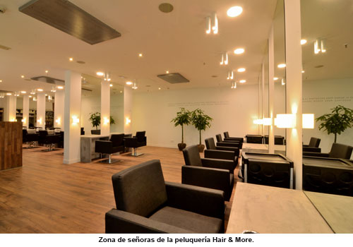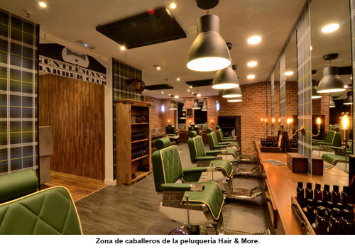 El espacio cuenta con dos zonas muy diferenciadas. Por un lado, un ambiente tranquilo y agradable con una decoración inspirada en la clásica barbería inglesa para ellos. Por el otro lado, una zona moderna y minimalista para ellas. En este punto destaca la zona de aguas con lavacabezas individuales y separados para una mayor comodidad y privacidad. Hair & More dispone también de una cabina vip donde el cliente puede elegir su propia música o encargar servicio de cáterin. Las marcas Revlon Professional, American Crew e Intragen han trabajado con Pablo Pérez en el desarrollo del proyecto.