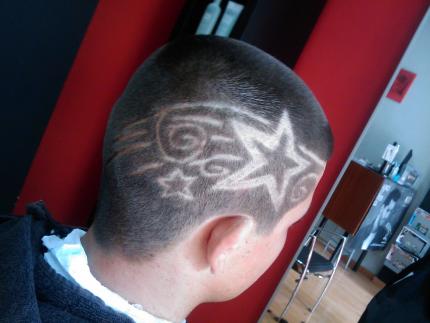 mi opinion:no me gustan nada los hair tatoos.....dan la sensacion de vulgar y callejero.....,aqui en mi tierra, todos los gitanos chungos y los traficantes llevan hair tatoo...y esta mal visto.