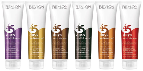 Revlonissimo 45 days es el primer champú y acondicionador 2 en 1 con una fórmula específica para cada tono de cabello. Con su composición libre de sulfatos, nutre e hidrata el cabello combatiendo la sequedad y fragilidad característica de los cabellos tratados, además de mantener la intensidad y cromaticidad al compensar la pérdida progresiva del color.