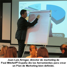Juan Luis Arregui, director de marketing de Paul Mitchell® España fue el encargado de dar comienzo a la segunda jornada para hablar de los números en el salón: tickets, facturaciones, gastos, ingresos, beneficios. Para ello, aportó herramientas para recabar los datos necesarios que permitan saber cómo lo está haciendo un salón, como si de una brújula se tratara. Del mismo modo, explicó cómo desarrollar un plan de marketing con objetivos bien definidos. Otro de los puntos que trató fue cómo convertir la zona de lavado en una fuente de ingresos y fidelización.