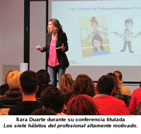 Por último, Sara Duarte, coach profesional y facilitadora, fue la encargada de impartir el último módulo de este Business Camp y ofreció a los asistentes Los siete hábitos del profesional altamente motivado. Para ello, habló de cuestiones como no crear creencias limitantes en nuestro entorno; prestar especial atención en lo que decimos, así como dónde focalizamos nuestra atención en cada momento; la importancia de poner pasión a todo aquello que hacemos y celebrar aquellos éxitos que alcanzamos.