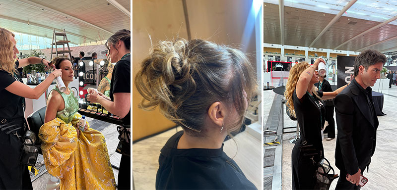 El sábado prepararon a los convocados para los Press Junkets en la Real Casa de Correos, en la Puerta del Sol. El domingo por la mañana peinaron a los que se alojaban en los dos hoteles citados y por la tarde ya en el Palacio de Congresos. También ofrecieron servicio de retoque en alfombra roja.