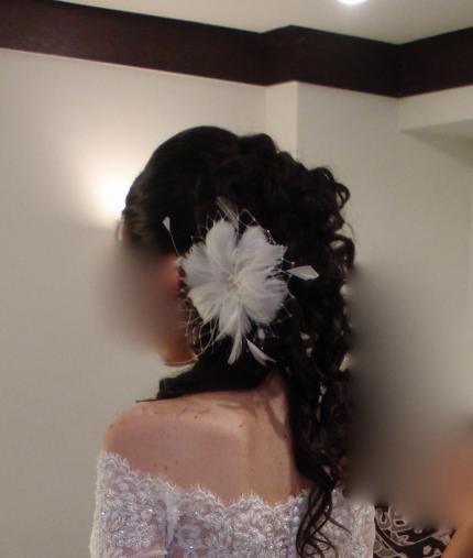 mai yo te aconsejaria que le pusieses ,un recogido lo mas sensillo posible la parte de delante como ella se peine ,por que hay gente que se ve muy cargada el recogido que le hiciste muy bonito ,pero como te a dicho el compi acortaria ,para que no llegue al vestido ya que le quitaria protagonismo ,un gran beso wuapa