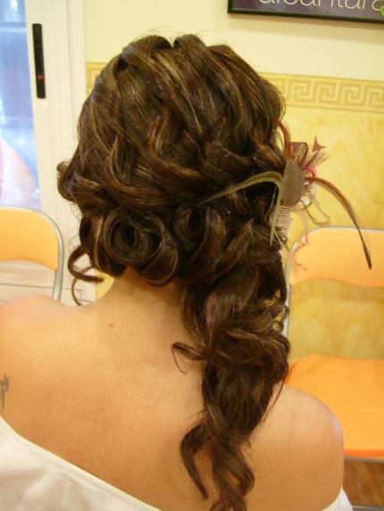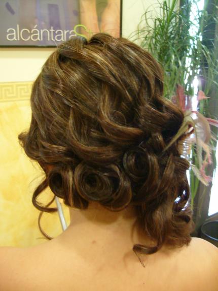 Tengo que peinar el día de su boda a una amiga, el caso es que tiene pelo para exportar...vamos yo calcularía que el triple de pelo que una cabeza normal... y la largura no es mucha, por el hombro aproximadamente... ya le he hecho una prueba de peinado en la que le coloqué un aplique de pelo natural para alargar, quedó muy logrado en color y conexión con su pelo, ya que con la cantidad y largura que tiene era tarea dificil, al principio le guato mucho, pero luego al verse vestida, le acompañé a la prueba del vestido, decía que se veía muy artificial, que entre el postizo, y el tocado que se había cogido, una flor de plumas preciosa, que se veía muy recargada...cosas de novias, que son muy pesadas...jejeje, la historia es que mañana le hago otra prueba, pero esta vez sin aplique postizo... me dais alguna idea? no lo quiere totalmente recogido, pero un semi, me da la sensación que igual queda un poco currillo...por su largura y se me había ocurrido un recogido de lado con un lateral totalmente suelto...que decis? darme alguna idea please!!!
