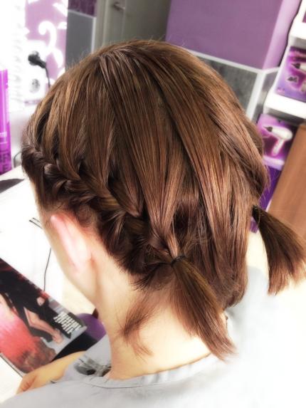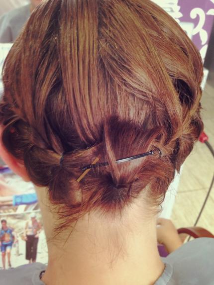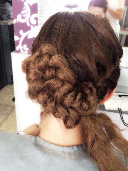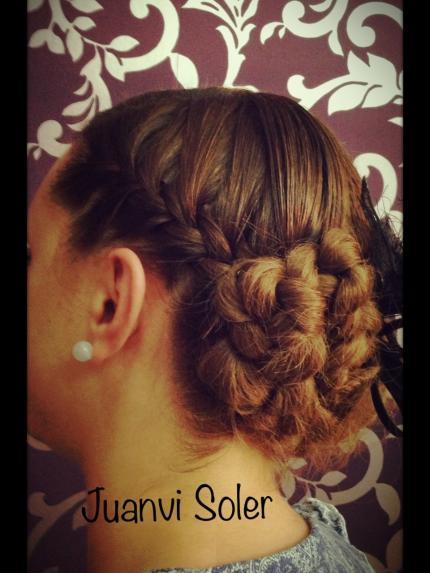 Muy bonito! para la materia prima de la que disponias.. demasiado bien te ha quedado jeje. con las mallas o el postizo que le has hecho un lateral trenzado y recogido y el otro lado que quedaba suelto se lo has cardado a modo de nido?Enhorabuena
