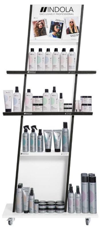 El diseño distintivo del hashtag captura el espíritu digital de la marca, mientras que las estanterías reflejan el sistema smart de las gamas integradas: #1 lavado, #2 cuidado y #3 acabado. Su estructura única muestra cómo se puede actualizar continuamente para que los salones inspiren a sus clientes con una cabecera que refleja las últimas tendencias del cabello o informa sobre las últimas promociones. Un display llamativo que capta toda la atención al instante, es fácil navegar por él y convierte el retail en algo tan sencillo como 1, 2, 3.