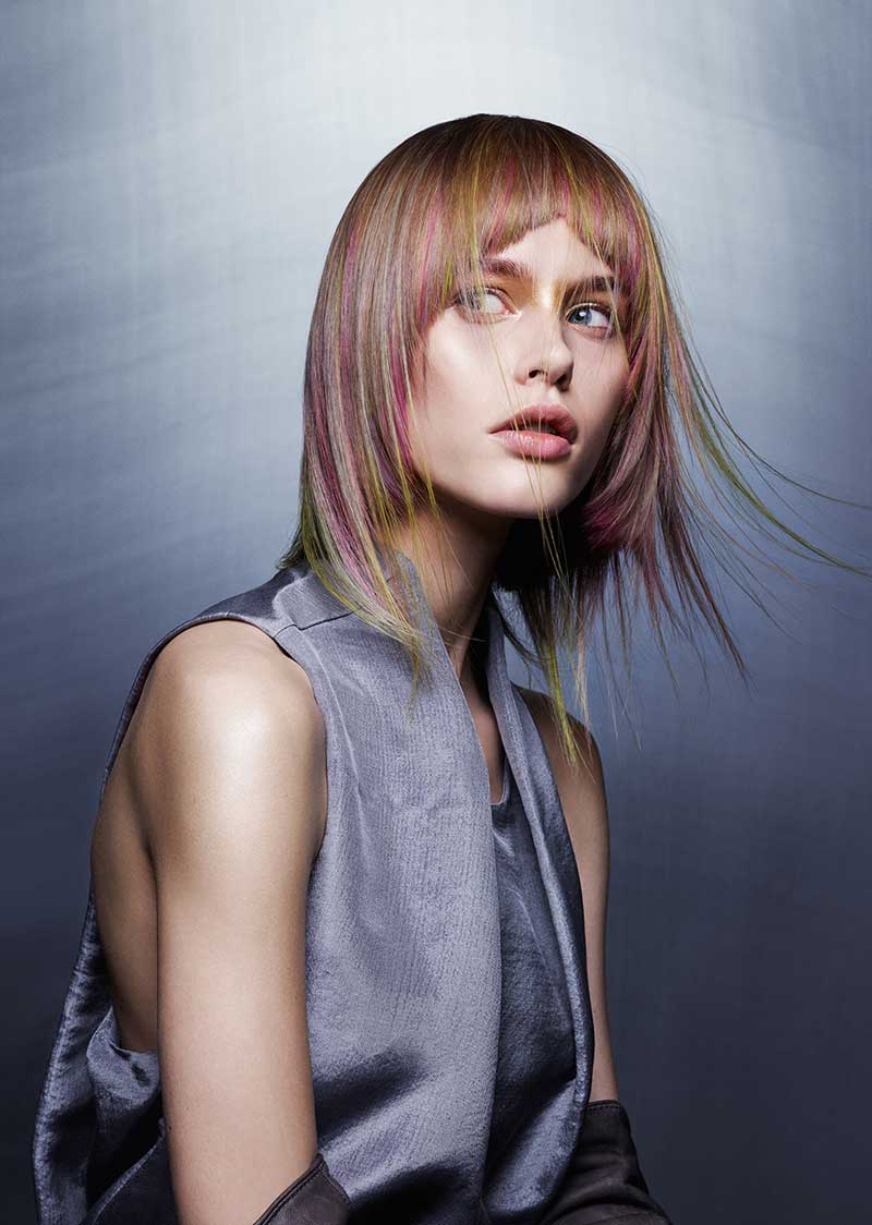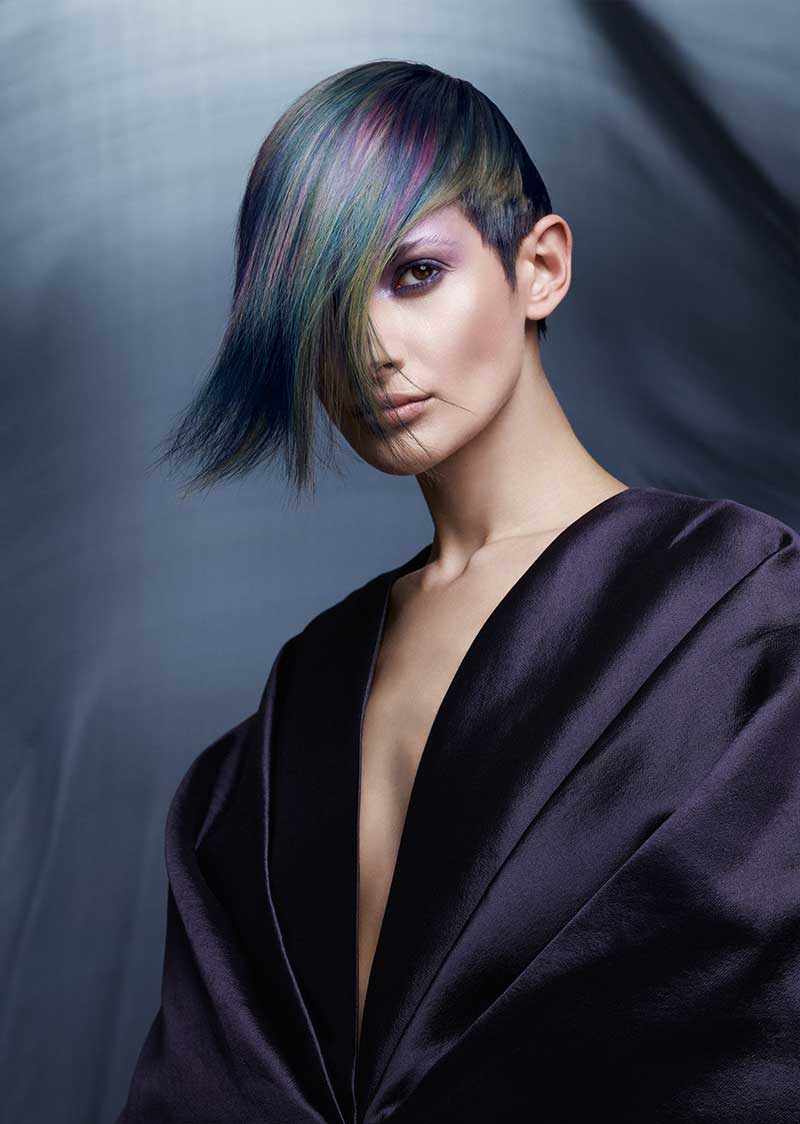 El equipo creativo de Color Zoom'17 ha creado la colección In·Flux con colores oscuros y elegantes que se funden en una iridiscencia misteriosa, creando un juego de colores en el cabello. Forma y color se integran a la perfección para crear un estilo en el que no se distinguen principio ni fin. El aire misterioso evoca un oscuro atardecer. La fusión perfecta de la luz dando paso a la oscuridad. En suma, un juego constante de luces y sombras.