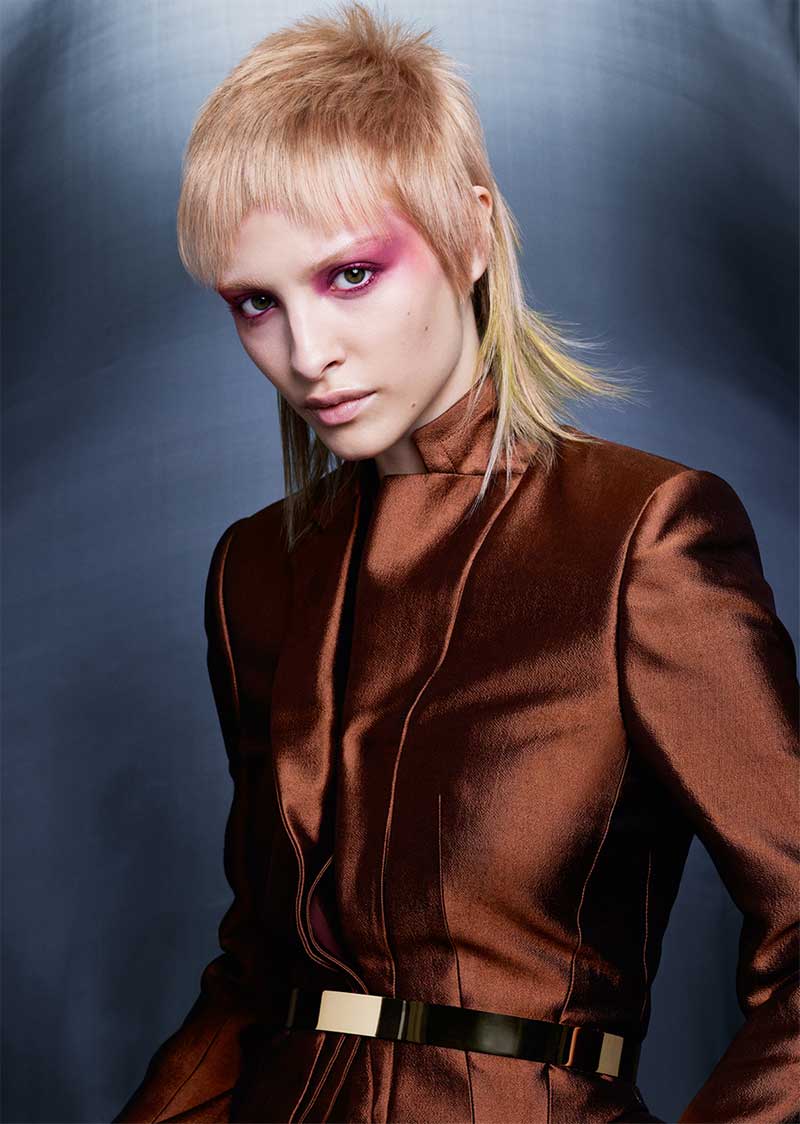 - Textura In·Flux: suma de contrastes. Ondas suaves y mechones ligeros con movimiento se combinan con texturas rugosas y siluetas fuertes. La fluidez de los cortes se destaca y la iridiscencia de los colores se hace más radiante creando una perfecta sinergia entre fuerza y elegancia.