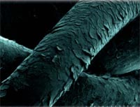 Un cabello sano, tiene unidas y superpuestas las capas de la cutícula con una mezcla de polipéptidos. La proteína del cabello tiene un alto contenido en azufre, que llega a través de la cistina, aminoácido que puede fácilmente formar uniones cruzadas con otras cistinas en la molécula del cabello en forma de enlaces (enlaces cistínicos). Esas fijaciones son responsables de la fuerza y resistencia y mantienen unidas las hebras de la cutícula del cabello. Si esta organización no se interrumpe, la fibra capilar está