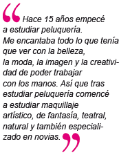 Ingrid Schlingmann: Hace 15 años empecé a estudiar peluquería. Me encantaba todo lo que tenía que ver con la belleza, la moda, la imagen y la creatividad de poder trabajar con los manos. Así que tras estudiar peluquería comencé a estudiar maquillaje artístico, de fantasía, teatral, natural y también especializado en novias.
