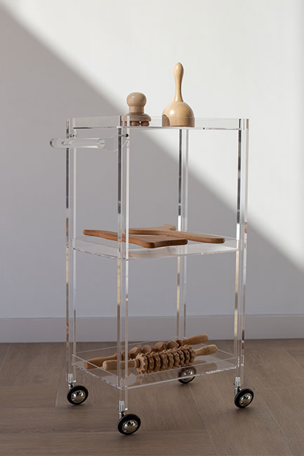 - Carrito auxiliar de acrílico transparente, especial para estética.