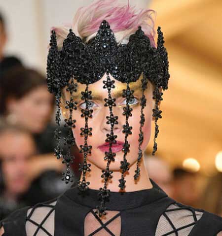 Cara Delevinge, con una recargada corona negra y creativos tonos con Color Intensity.
