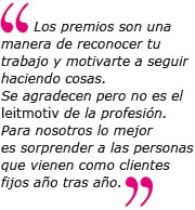 J.B.: Es una manera de reconocer tu trabajo y motivarte a seguir haciendo cosas. Se agradecen pero no es el leitmotiv de la profesión. Para nosotros lo mejor es sorprender a las personas que vienen como clientes fijos año tras año.