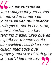 J.B.: En las revistas se ven trabajos muy creativos e innovadores, pero en la calle se ven muy buenos trabajos o, por lo contrario, muy nefastos… no hay término medio.