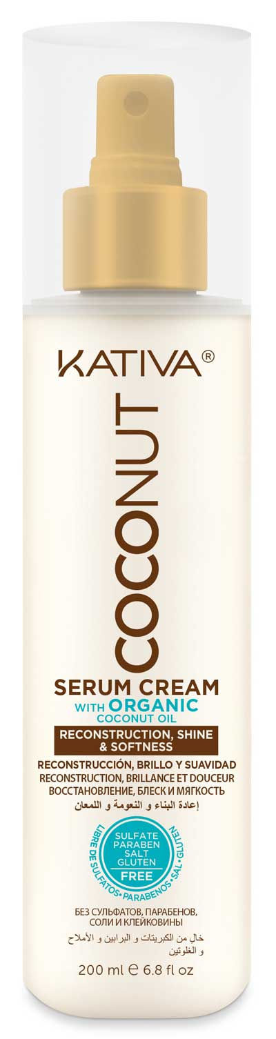 Kativa Coconut ha sido diseñada con una exclusiva fórmula a base de aceite de coco orgánico que penetra en el cabello, reconstruyendo y aportando todos los nutrientes necesarios. El aceite orgánico posee mayores concentraciones de minerales y vitaminas para un resultado más eficaz con grandes beneficios para el pelo: reconstruye la fibra capilar, aporta brillo y suavidad, hidrata y nutre. Se recomienda especialmente para cabello dañado y deshidratado con puntas abiertas.