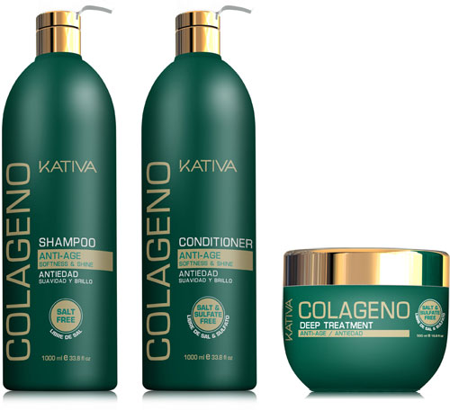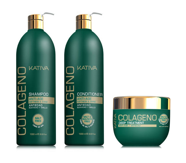 El tratamiento completo de Kativa Colágeno aporta cuerpo, vigoriza y nutre el cabello, deteniendo el envejecimiento prematuro. Además, su efecto humectante y revitalizante hidrata el cabello dándole brillo, tersura y suavidad.