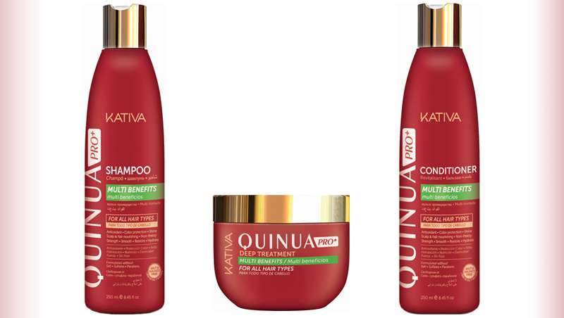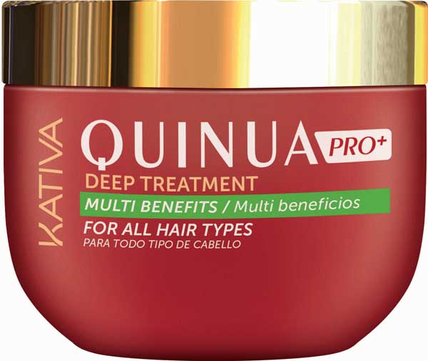 La línea Kativa Quinua PRO+, formada por champú, acondicionador y mascarilla, prolonga la duración del color tanto de cabellos teñidos como de las mechas. Estudios realizados en un laboratorio independiente han demostrado que la duración del color, tras el uso continuado de la gama Kativa Quinua PRO+, aumenta un 32%.