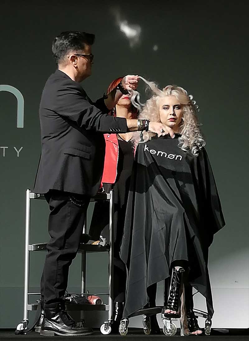 Kemon, una marca 'green' y con mucho que aportar y decir en lo referido a la moda para el cabello en todos sus formatos, productos, volúmenes, técnicas, texturas y colores, ha tenido en Kemon Fashion Night a su mejor exponente. El gran artista italiano Mauro Galzignato hacía su entrada. El show Kemon daba comienzo bajo la experta batuta del admirado e icónico Galzignato. Éste concetró su actuación en tres explosivos pases, demostración y pasarela, que lograron arrancar el aplauso unánime del público, por su filosofía y tratamiento del cabello y el peinado, comercial, moderno y a la vez atemporal, con propuestas que bajan de la pasarela a las calles para la conquista de clientes satisfechos.