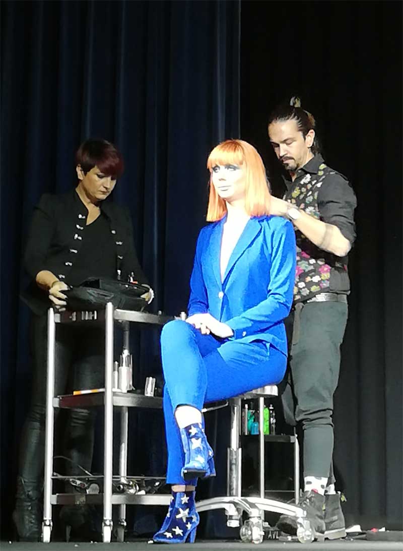 La segunda parte de las propuestas del estilista italiano se concentraron poco después en poner de relieve la técnica de los cortes, tijera y navaja, esta última un clásico recuperado por Mauro. Los bob, pixies, flequillos y opciones de cortos y midis se aliaron con las musas y las manos expertas y manejo preciso de cada herramienta del equipo Galzinato sin olvidar ni dejar en un solo momento de lado al color, el que potencia cada resultado o viceversa, haciéndonos comprender que el éxito de una creación depende de la justa medida y combinación perfecta de muchos y detallados factores y técnicas. Llegados a este punto, el auditorio estaba ya más que entregado a Mauro, su equipo y a Kemon, por supuesto.