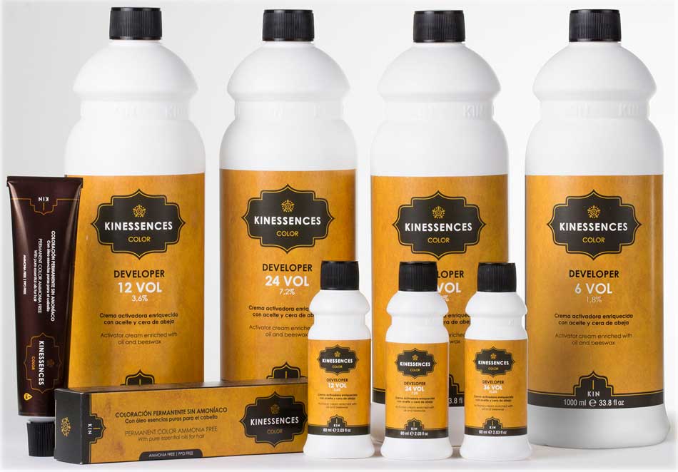 Kinessences Color es un sistema muy práctico para el día a día en el salón. Se trabaja en dos pasos: la crema de color Kinessences, con cuatro niveles de aclarado, junto con la loción reveladora, disponible en cuatro concentraciones según el resultado final deseado y la técnica a trabajar.