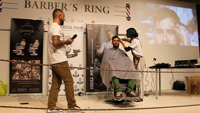 Diego Guerrero Langa, Premio a la Mejor Barbería Internacional del año 2014 en Milán, junto a su compañera Cristina, ha llevado a cabo una sesión demostrativa en el nuevo espacio Barber's Ring, situado en el pabellón 2 de Salón Look