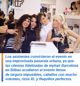 Durante el evento, myhair Barcelona sorteó un cheque de 150 euros en productos myhair y ofreció cupcakes y canapés por gentileza de la pastelería Bizkarra. Los asistentes convirtieron el evento en una improvisada pasarela urbana, ya que las clientas fidelizadas de myhair Barcelona en Bilbao acudieron al evento llenas de largura imposibles, cabellos con mucho volumen, rizos XL y flequillos perfectos.