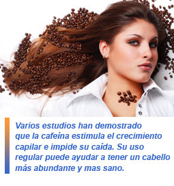 Varios estudios han demostrado que la cafeína estimula el crecimiento capilar e impide su caída, protegiendo el cuero cabelludo de los efectos dañinos de la testosterona. Su uso regular puede ayudar a tener un cabello más abundante y mas sano.