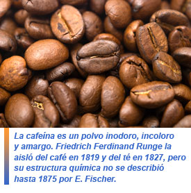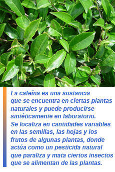 La cafeína es un alcaloide sólido de la serie púrica descubierta por Friedrich Ferdinand Runge en 1819. Es una sustancia que existe de forma natural en algunas plantas, siendo el café y el té las más conocidas, aunque también se puede producir de manera artificial. En las plantas actúa como un pesticida natural, matando los insectos que se alimentan de ellas. Cuando la ingerimos actúa como un estimulante del sistema nervioso, produciendo un incremento en la energía. Se elimina de forma natural a través de la orina.