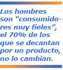 Según TNS, en el sector de la perfumería, pero también en términos generales en otros mercados como el de la moda, los hombres están menos dispuestos a renunciar a la calidad y seguridad de sus marcas líderes. Además, frente a la crisis, reducen menos sus compras de marcas líderes que las mujeres y son menos elásticos al precio. Del Top 5 de productos más vendidos en España, cuatro son de L’Oréal Men Expert. Concretamente la crema de tratamiento Hydra Energetic Día tiene una cuota de casi el 10% del mercado de cuidado de la piel.