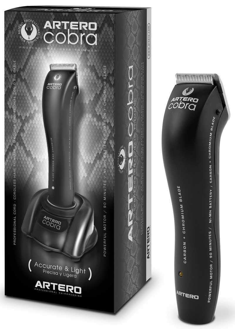 La nueva Artero Cobra facilita el acceso a las zonas más difíciles gracias a su diseño ergonómico. Es muy adecuada para contornos, nucas y patillas.