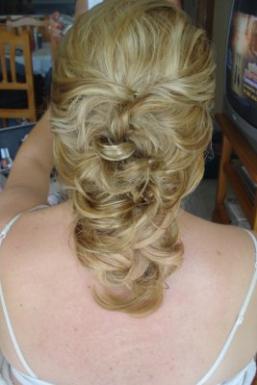 si le he metido relleno,tenia una melena un poco escalonada, por debajo del hombro. y el pelo que rodea tambien es postizo. la pena es que no hice fotos de los pasos, pero si de la nvia, os los voy pasando, si os sirve de ideaaa