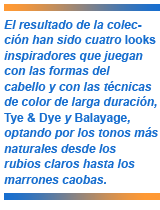 El resultado han sido cuatro looks inspiradores que juegan con las formas del cabello y con las técnicas de color de larga duración, Tye & Dye y Balayage, optando por los tonos más naturales desde los rubios claros hasta los marrones caobas.