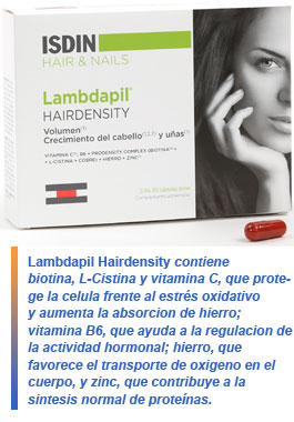 Isdin presenta Lambdapil Hairdensity, un nuevo complemento alimentario con Prodensity Complex. Este compuesto, con biotina y L-Cistina, ayuda al mantenimiento normal del cabello y uñas. El producto también contiene vitaminas C y B6, hierro y zinc que aportan volumen y estimulan el crecimiento del cabello en solo tres meses.