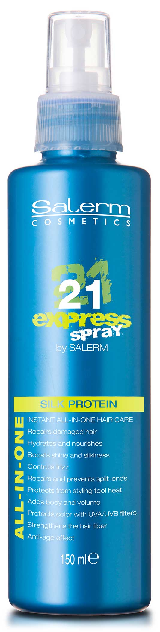 - Espray Salerm 21 Express. Ideal para los cabellos deshidratados, el espray Salerm 21 Express contiene protección solar para conseguir un cabello más cuidado e hidratado.