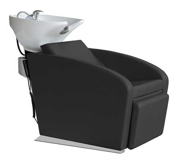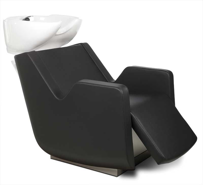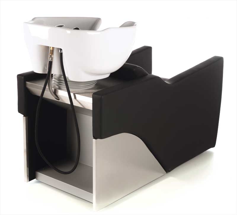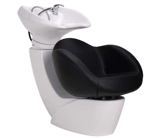 Novedad de la firma, Stil, negro con lavacabezas blanco es uno de los diseños más prácticos y cómodos de la firma que se adapta a cualquier espacio y decoración. Destacan sus apoya brazos y mandos cromados y la teja de cerámica y base de fibra de vidrio, segura, fiable y ergonómica. Asiento deslizable, el lavacabezas se puede fijar al suelo con un sencillo gesto a través de dos varillas.