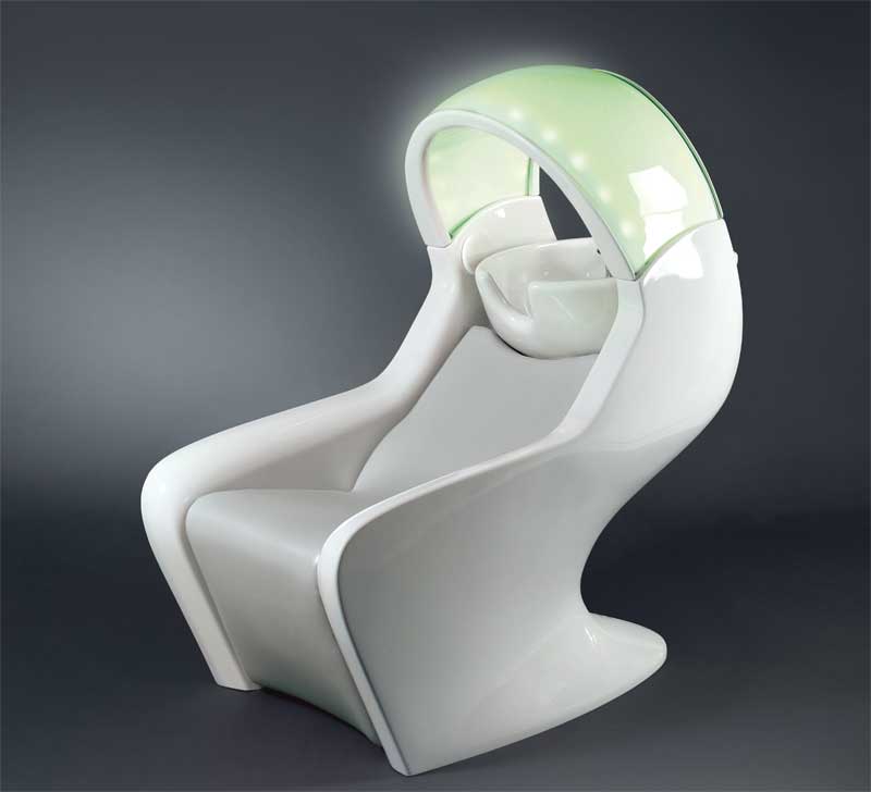 El tocador Human y el mostrador Komplete se convierten en cuerpos iluminantes y crean un efecto de ligereza fluctuante. Integración de alta tecnología con formas esculturales, la colección Nutopia de Karim Rashid representa un icono en el diseño de la industria de los salones de belleza.