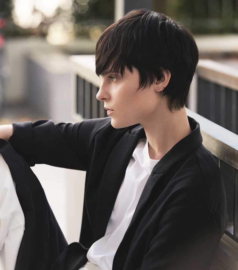 El pixie se vuelve más radical con capas ligeramente irregulares, puntas cortadas de una manera marcada y una textura mate. El flequillo radical es un punto clave de este look.