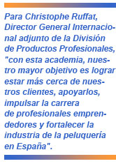 Para Christophe Ruffat, Director General Internacional adjunto de la División de Productos Profesionales, "con esta academia, nuestro mayor objetivo es lograr estar más cerca de nuestros clientes, apoyarlos, impulsar la carrera de profesionales emprendedores y fortalecer la industria de la peluquería en España".