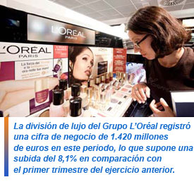 La división de lujo del grupo registró una cifra de negocio de 1.420 millones de euros en este periodo, lo que supone una subida del 8,1% en comparación con el primer trimestre del ejercicio anterior. La de cosmética activa aumentó su cifra de negocio un 6,2%, mientras que la de productos de gran consumo lo hizo un 5,5%.