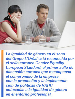 La igualdad de género en el seno del Grupo L'Oréal está reconocida por el sello europeo Gender Equality European Standard, el primer sello de dimensión europea que recompensa el compromiso de la empresa con la promoción y la implementación de políticas de RRHH enfocadas a la igualdad de género en el entorno profesional. Se trata de un certificado válido por tres años y que identifica el nivel de excelencia de las prácticas empresariales relativas a la diversidad.