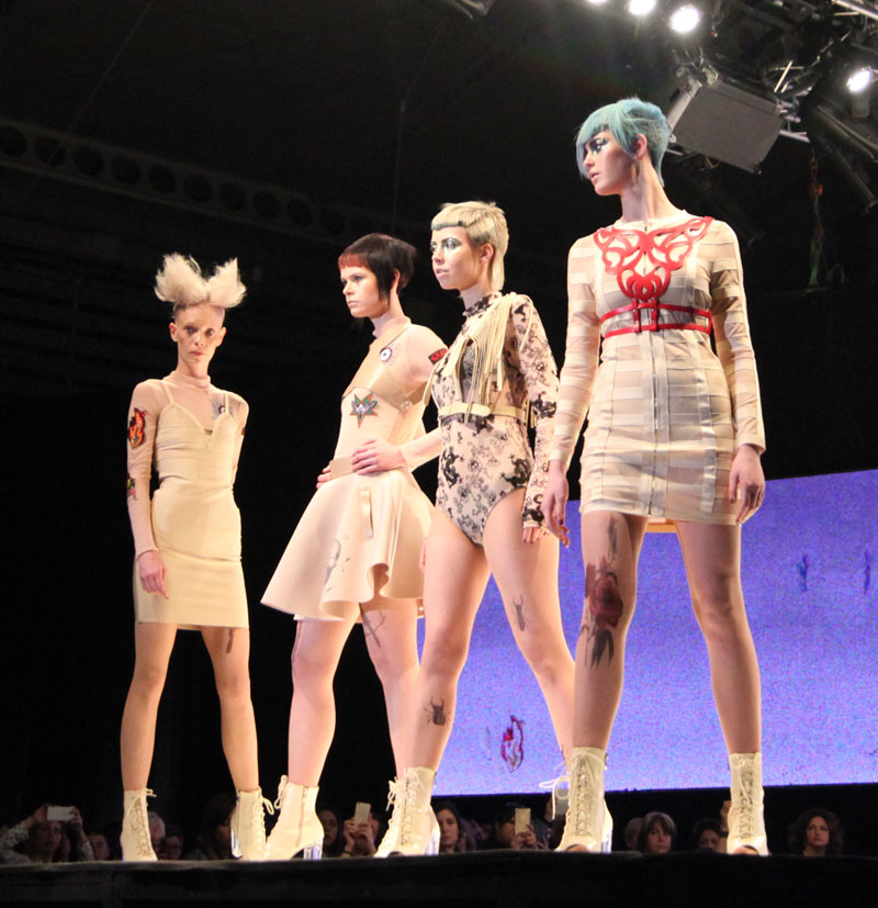 La pasarela Beauty BCN también ha mostrado otros shows de Schwarzkopf, como el del matrimonio sueco SHY+FLO y sus creaciones inspiradas en los insectos. Sus looks recrean el mundo de arañas, abejas, mariposas o libélulas en peinados que se asemejan a sus mezclas coloridas y geométricas simetrías. La pareja de estilistas, apasionados con su trabajo, muestran su atrevimiento en apuestas de cortes rectos y tonalidades como el rosa, el turquesa, el rosa pálido o los pigmentos pastel. Adoran las nucas despejadas adornadas por un simple y largo mechón. El estilo bob y los flequillos de distintas longitudes son otra máxima en sus trabajos.